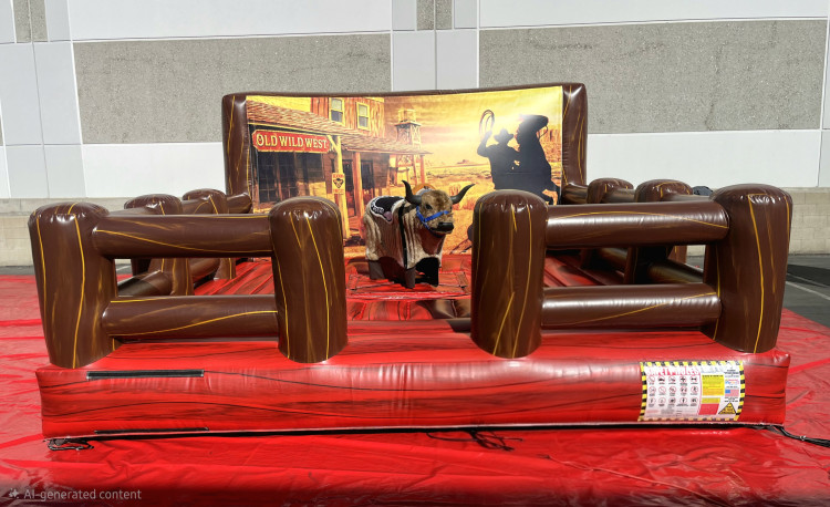 Strap in for a wild ride with this Mechanical Bull rental — a thrilling, crowd-pleasing centerpiece for parties, college events, corporate mixers, and western-themed celebrations. Designed to mimic the unpredictable motion of a real bull, it challenges riders of all ages and skill levels to hold on as speed and movement are adjusted by a trained operator. Surrounded by a padded inflatable or soft landing area for safety, the unit is operated by staff who control intensity, start/stop functions, and rider duration to ensure fun without unnecessary risk. Ideal for creating memorable moments and epic photos, the Mechanical Bull offers high-energy entertainment that keeps guests cheering, competing for the longest ride, and coming back for another turn.